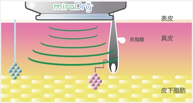 マイクロ波(電磁波)を照射し、その熱量でターゲットとなるアポクリン汗腺やエクリン汗腺を死滅させるのが原理ですが、その照射熱量によってターゲット汗腺が死滅する量が左右します。